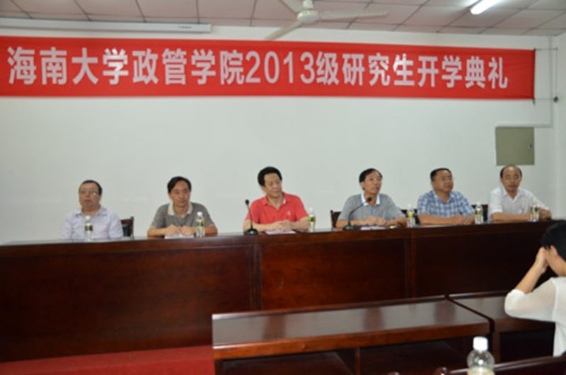 2013年8月30日下午3点30分,海南大学政治与公共管理学院2013级硕士研究生开学典礼在学院多媒体报告厅隆重举行。学院张治库院长、王默忠书记、段捷频副书记、宋增伟副院长和江红义副院长等领导和部分硕士研究生导师以及全日制MPA研究生、政治学理论专业和中共党史专业硕士研究生共109人参加了此次开学典礼。