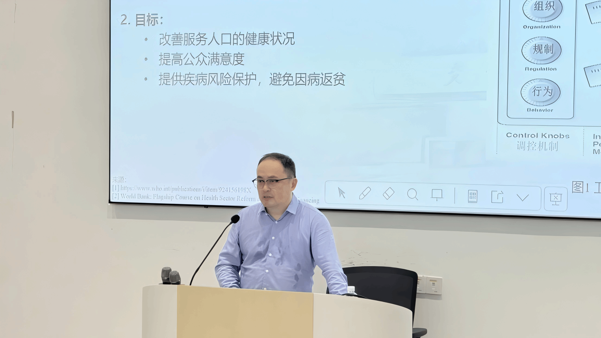 医疗卫生服务体系是国家治理体系的重要组成部分,关乎国民健康福祉与社会长治久安。课堂伊始,周忠良教授立足全球化深度融合与“健康中国”战略深入推进的时代背景,系统梳理了我国医疗服务体系与卫生服务体系的整体架构与发展脉络,深刻阐释了中国卫生政策与全球健康目标的内在契合性,为师生理解我国医疗卫生事业发展的制度逻辑奠定了坚实基础。